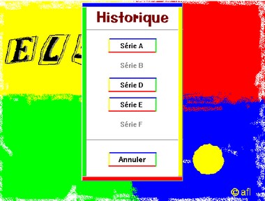 L'historique offre la possibilité de revoir le dernier exercice fait dans 5 séries d’entraînement : A, B, D, E et F. Ce visionnement peut se faire collectivement pour confronter des stratégies. Plusieurs enfants, ou un enfant avec son enseignant peuvent avoir ainsi des moments réguliers de réflexion sur la lecture, sur les stratégies utilisées, .etc.